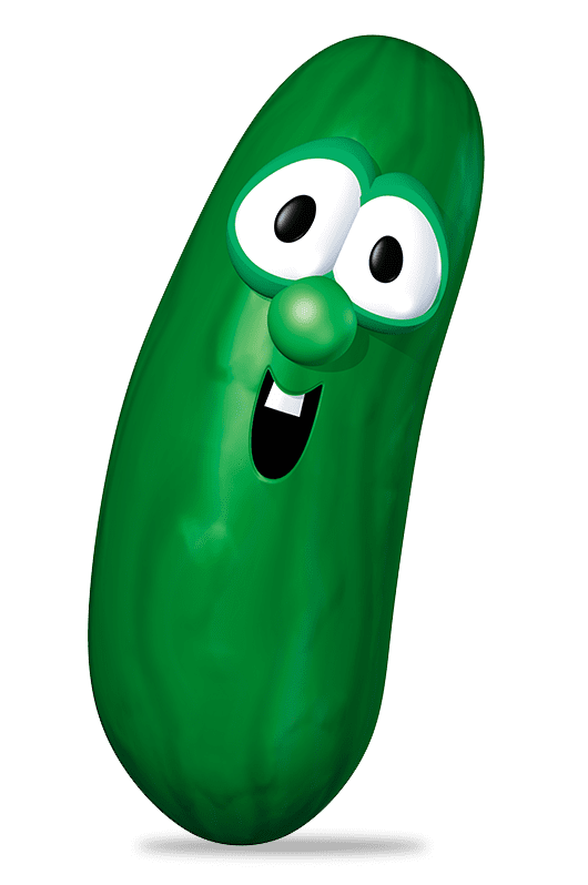 Larry made his first on-screen debut in a 1992 VeggieTales screen test aptly called Mr. Cuke’s Screen Test, where he pops out from a ceramic bowl on the kitchen countertop and hops towards the camera and smiles at the viewer.