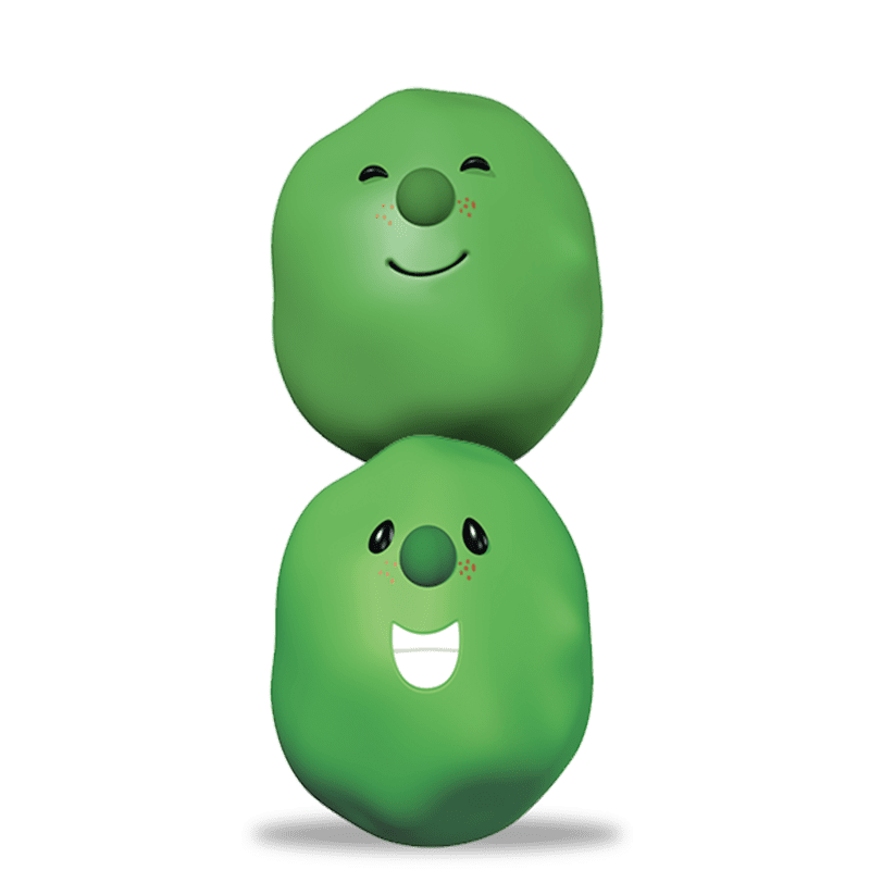 The French Peas have gone on to become favorites among VeggieTales fans due to their cheeky nature and iconic performances. Besides portraying Philistines and defenders of Jericho, the Peas are also known for their rendition of There’s a Hole in the Bottom of the Sea, portraying Little Joe’s brothers in The Ballad of Little Joe, playing a whole town of creatures called Munchies in The Wonderful Wizard of Ha’s, and helping Archibald Asparagus take over an episode of VeggieTales (to somewhat disastrous results).